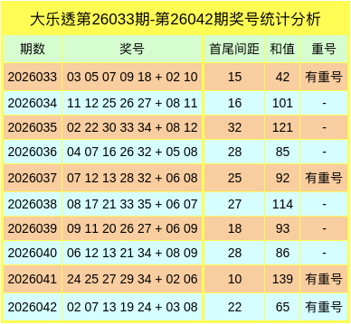 和值分析:上期前区奖号和值为65,较上期数据下降74点,开出小和值。最近10期前区奖号数据显示大和值较热,本期预计和值开在75-85区间和值。